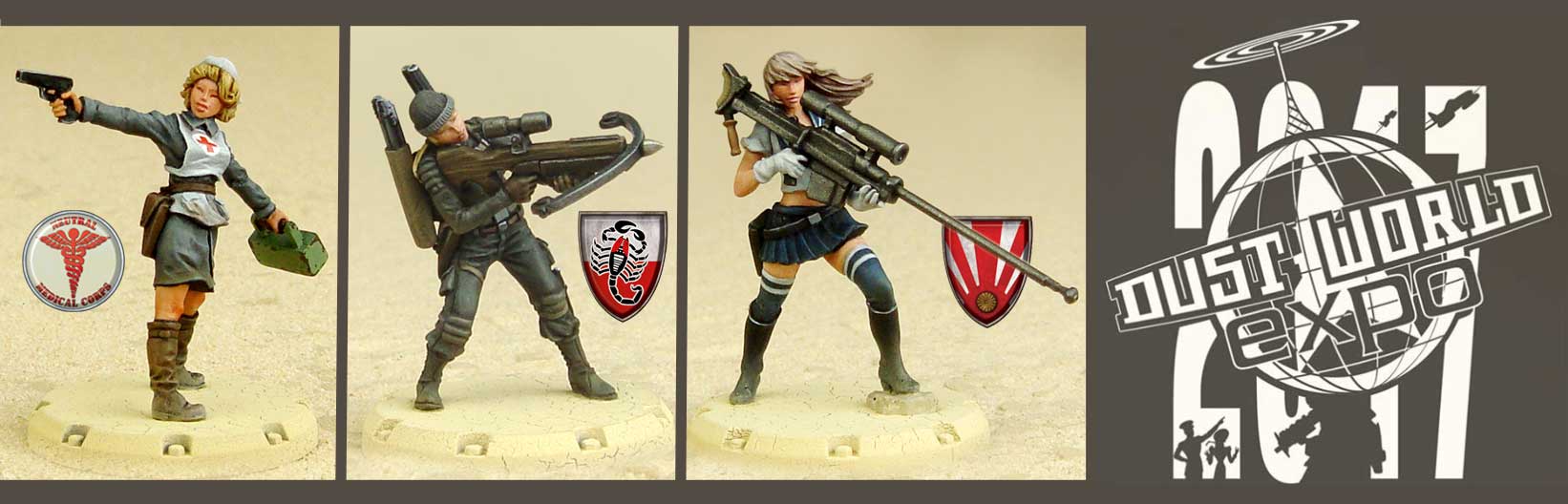 Dust World Expo is an annual wargaming convention based around games set within the World of Dust framework. Originally it was hosted within Vul-Con but when that was cancelled, the Southwest Dust Devils spun it out to be its own event, held at Imperial Outpost Games, with the game's creator, Paolo Parente, flying out from China to attend. As of year two, it became unique in that the host location became an actual military establishment, Falcon Field in Mesa, a commercial airport that became a Royal Air Force training field during World War II. The event was in the Arizona Wing of the Commemorative Air Force Museum housed there. However, it moved back to Imperial Outpost in 2017. The website has vanished, but there's a Facebook event for 2017. |