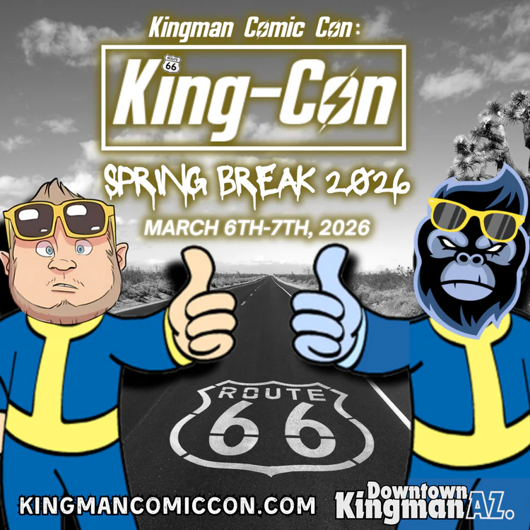 King-Con may be the first convention to take place in Kingman. It's a general pop culture comic-con with a string of local sponsors and was first held in 2023. Their website was hosted at Big Mike's r You Cereal? (ryoucereal.com) and now at Big Mike's Kingland Studios (kinglandstudios.com), but the event moved from the Beale Celebrations store to the Mohave County Fairgrounds in year three and back in year four. |