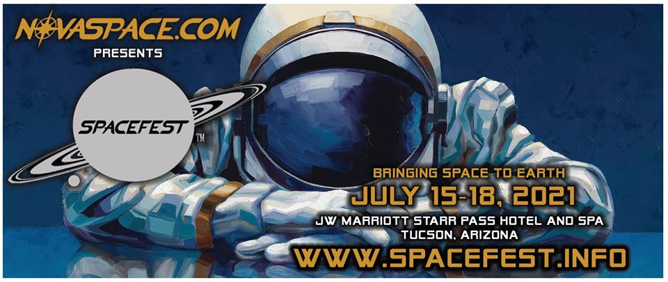 Spacefest is an annual reunion of NASA Apollo astronauts, famous space scientists, authors, astronomers, space artists and fans. It's been run by space artist Kim Poor and his wife Sally since 2007. After Kim passed, Sally kept the event going solo. The first SpaceFest was in Mesa in 2007 with seven of the nine people who have walked on the moon in attendance, among a total count of 23 astronauts. All but two of the succeeding events were held in Tucson, with Spacefest II held in San Diego and Spacefest VI in Pasadena. |