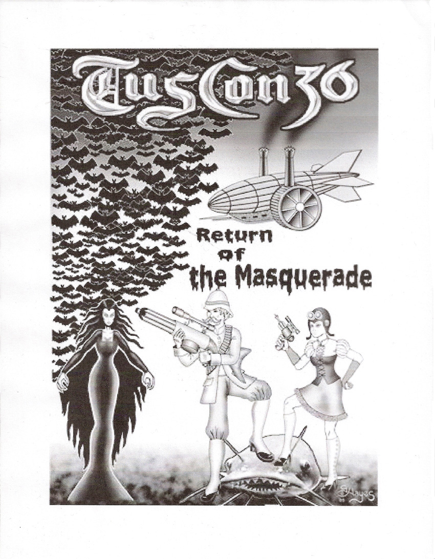 TusCon XXXVI-Return of the Masquerade Flyer II (2009) Measures 8 1/2"x11", artwork by Gary Hayes, © 2009