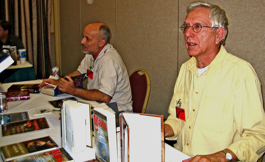 David Brin and William K. Hartmann at the autograph session Saturday.